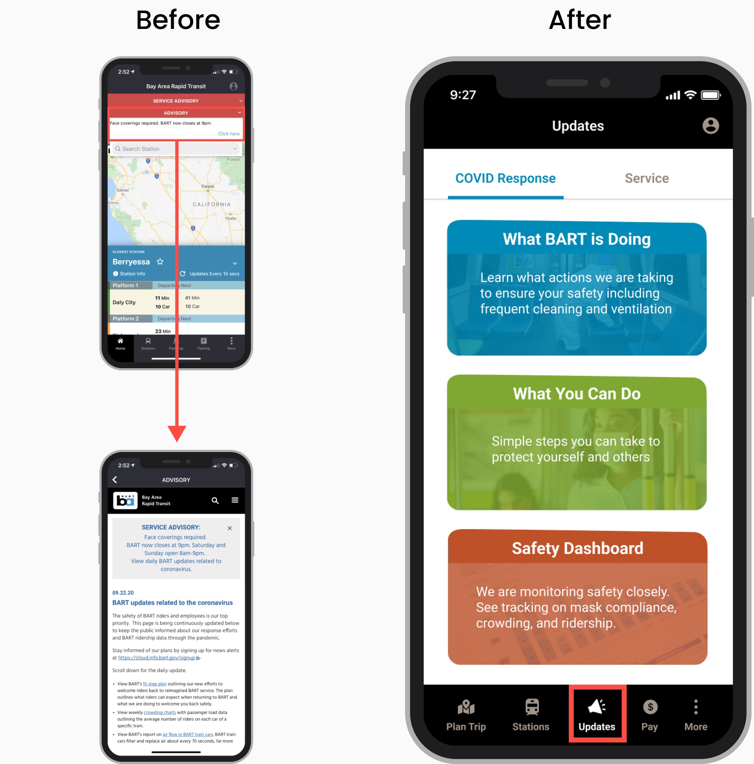 I added a new navigation item “Updates” so users can access safety information from any screen. This increases visibility if users miss the banner or navigate away from the homepage.