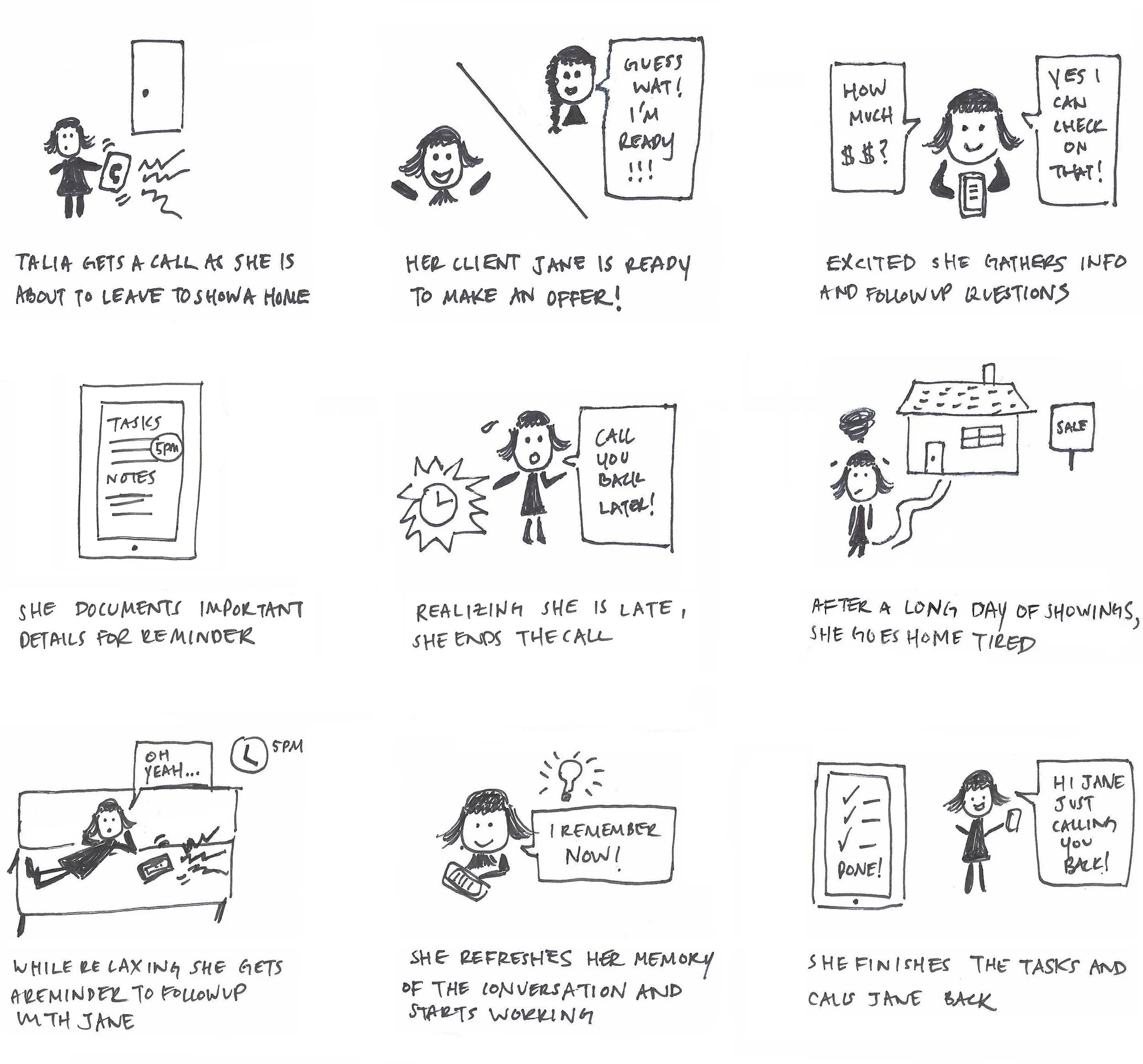 To get a better sense of how users might use the application, I crafted an user scenario and created a corresponding storyboard: